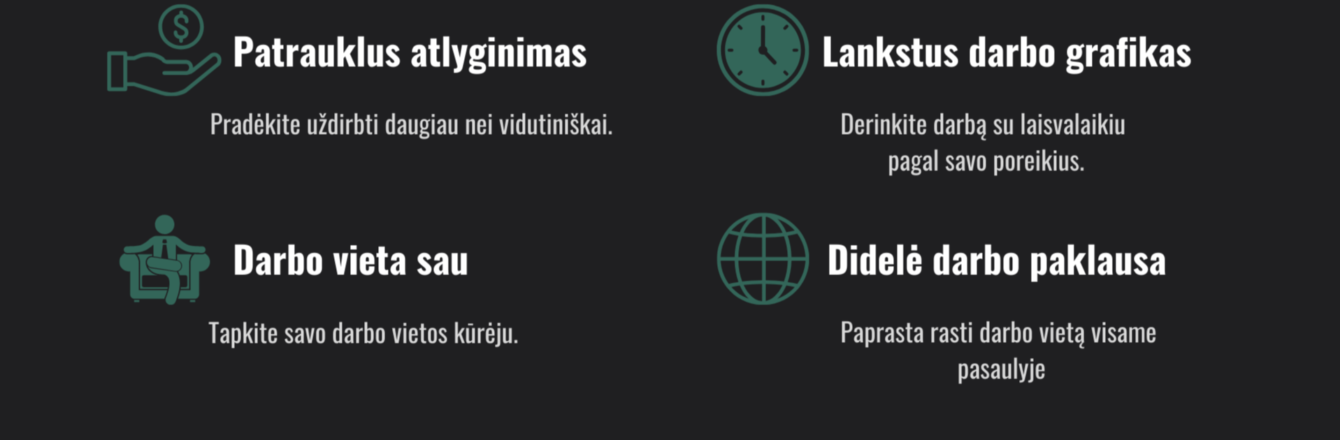 Paruošime jus darbui iškart po mokymų – pradinės patirties nereikia.